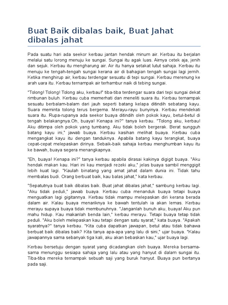 Semuanya adalah baik baginya dan tidak berlaku hal yang demikian melainkan ke. Buat baik dibalas baik. Contoh karangan narasi tentang fiksi ini juga sering disebut sebagai contoh karangan fiksi.